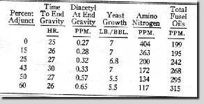 Gerade die Verwendung von Zuckern oder Sirupen ist in der Praxis in Amerika weit verbreitet. Es hat den Vorteil, daß man sein bisheriges Maischprogramm einfach beibehalten kann (2). Während man aus ökonomischer Sicht dem Einsatz von Sirupen ausdrücklich zustimmen muß, bliebt negativ festzuhalten, daß die so hergestellten Würzen geschmacklich nicht immer übereinstimmen (6/7).