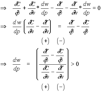 . Der Schnittpunkt mit der Abszisse bedeutet, daß der Haushalt nur für Zukunftskonsum arbeitet, während er im Schnittpunkt mit der Ordinate den Gegenwartskonsum nur durch Entsparen finanziert. Im Einperiodenfall wäre der Keil geschlossen und es ergäbe sich eine Budgetgerade, die vom Ursprung durch H liefe. Im Gegensatz zu den Haushalten können die Unternehmen nicht auf beiden Märkten zugleich rationiert sein. Sie maximieren ihren Gewinn in Abhängigkeit von den Preisen unter Beachtung der Produktionsfunktion ( also ihrer technischen Restriktion).[18] Jede Rationierung wirkt sich nur über die Produktionsfunktion auf die Planung für den anderen Markt aus, so daß wie bei der Budgetgerade im Einperiodenfall stets eine Schranke die Bindende ist, im Fall der Abbildung 5 (Anhang) also die Absatzbeschränkung
