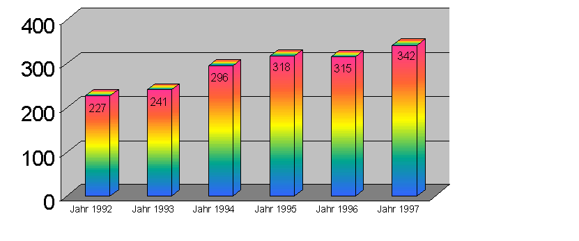 (Ausnahme 1996: vermutlich rezessionsbedingt)