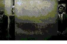 Die Innenseite, die der Mann gerade liest, hat als Schlagzeile: >Der Frieden ist schwach<. Der Mann entfernt sich. Die Kamera schwenkt mit und erfaßt im Hintergrund eine Gruppe spielender Kinder. /
