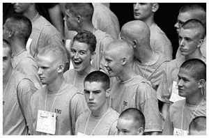 30 weibliche Studentinnen beenden am heutigen Tage die 158-jährige "nur-Männer-Zugangs-Politik" des Militärinstituts. "Es ist wirklich beängstigent," sagt Jen Jolin, ein neuer weiblicher Kadett. "Jeder, der sagt, er hätte keine Angst, ist verrückt!"