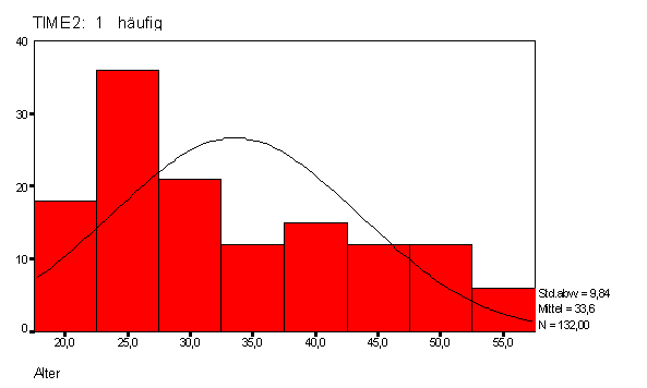 Da a * mit 0,011 kleiner ist als a = 0,05, wird die Hypothese H0 verworfen. Das Alter in der Stichprobe der Vielnutzer ist nicht normalverteilt.