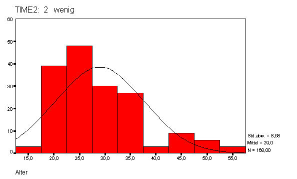 Die Größe der Stichprobe der Wenignutzer beträgt 168. Das durchschnittliche Alter liegt bei 29,0 Jahren und die Standardabweichung bei 8,68.