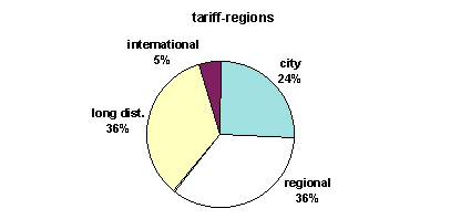 The distribution of the telecommunications traffic is an important factor for the competitiveness of regional operators. The more of the traffic is made within the borders of the State, the better for local suppliers with small networks. According to the figures of my survey I estimate 75% of the traffic to run in Brandenburg. So the regional suppliers are in a good position. In chapter 5 this topic will be dealt with more concretely.