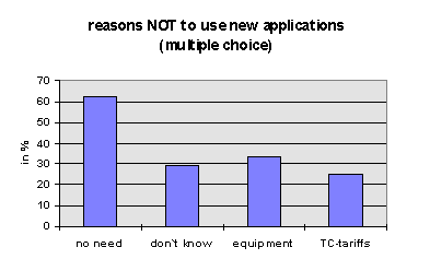 Most of the 72% of the enterprises that do not use new applications hesitate to decide for a future investment so far. The opinion not to need such applications is the most important one. But new developments and techniques create useful features for nearly everybody. The most important task therefore seems to be to convince today`s normal users to be progressive.