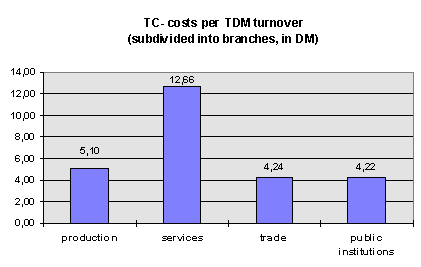 I expected very small businesses not to have several telecom charac-teristics that I defined as essential in the sense of this survey. This is for example the at least possible need of new techniques, monthly TC costs of more than DM 500 and thus the capability to assess the market from a non-private point of view.