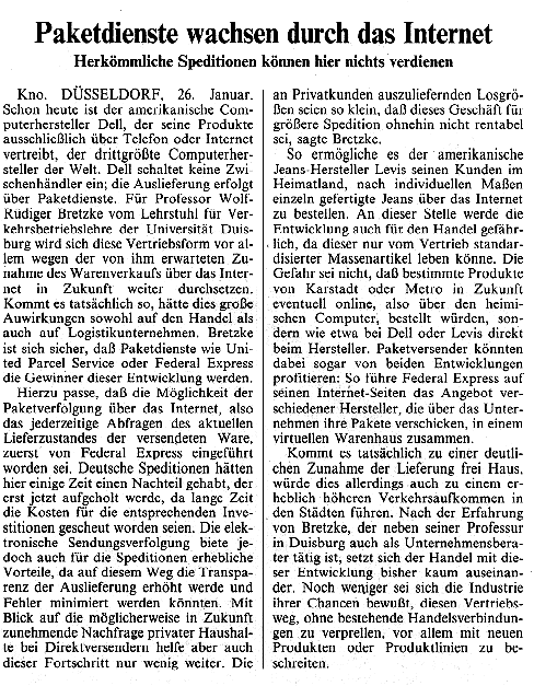 "Paketdienste wachsen durch das Internet" in: FAZ 27.01.1998, Nr. 22, S.21