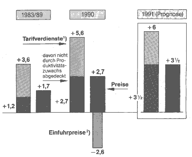 Das Institut erforschte außerdem, daß bei einem Lohnabschluß von bis zu 5 % der Preisanstieg sich moderat verhalten und am Ende des Jahres 1992 eine Rate von wieder 3 % erreichen würde.[36]
