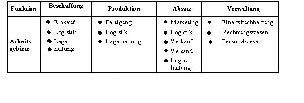 Allgemein werden Unternehmen in die Funktionen Beschaffung, Produktion,