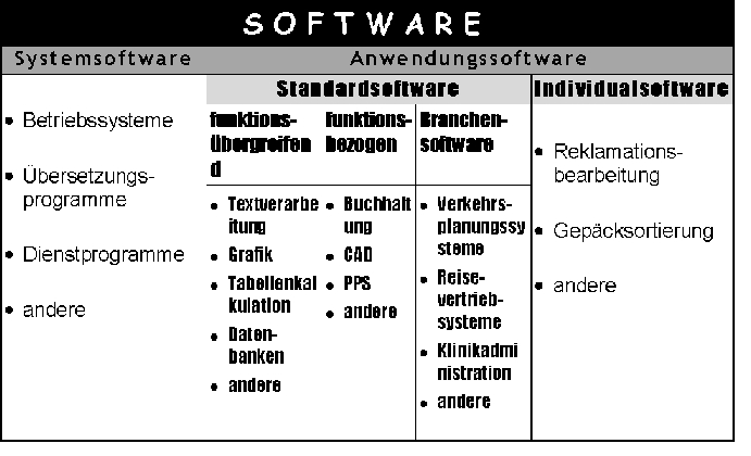 Tabelle 2:  Allgemeine Softwareübersicht mit Beispielen..............7