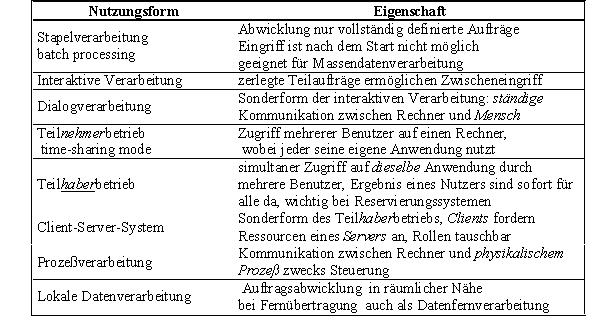 Tabelle 4:  Betriebsarten von DV-Anlagen............................10