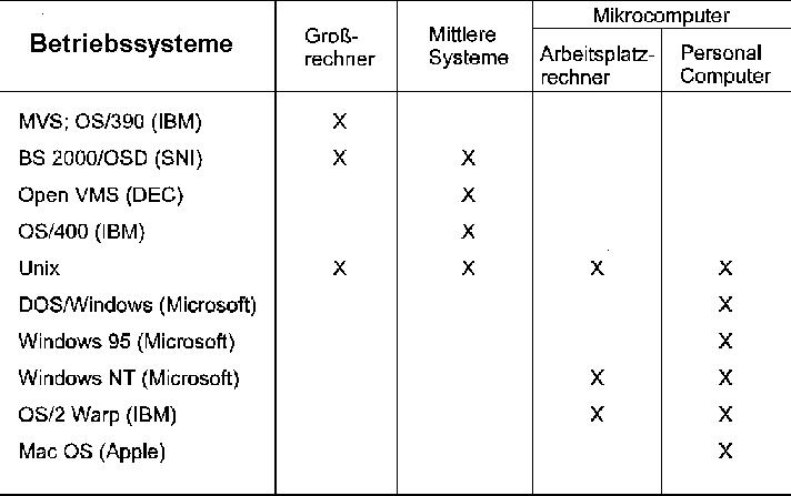 Tabelle 6:  Betriebssysteme und Rechnerklassen......................10