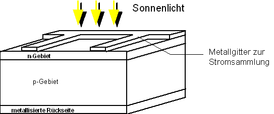 Das Grundmaterial fast aller Solarzellen ist das Silizium. Der gebräuchlichste Aufbau ist schematisch in Abbildung 1 dargestellt.