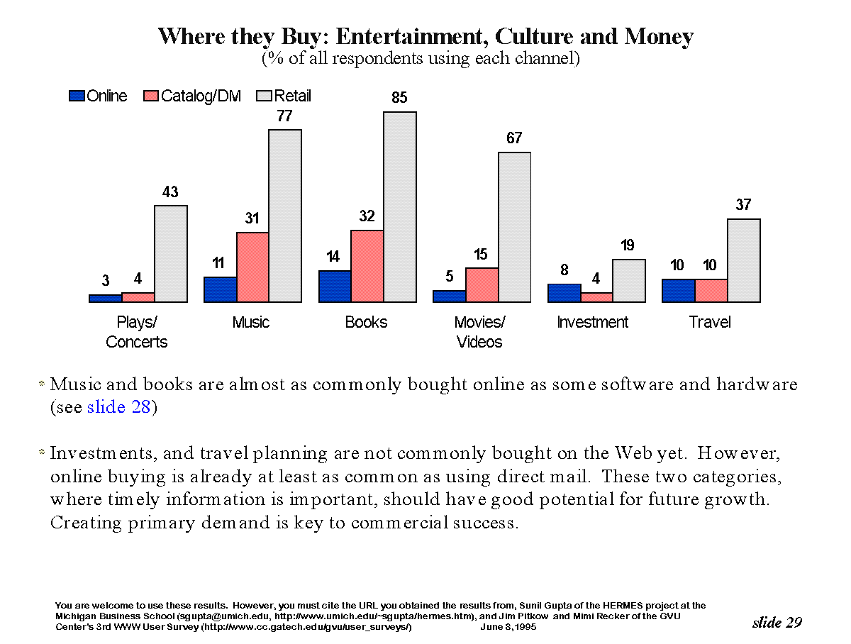 Ganz allgemein lassen sich Internet-Angebote grob in 3 Kategorien einteilen. Da wären 1. die Kommunikationsdienste, welche einen direkten Datenaustausch zwischen den Anwendern ermöglichen. Dann gibt es 2. die Informationsbeschaffung oder Recherche und 3. die diversen Spiele. Während Kategorie 1 und 2 bisher auch schon von Firmen eingesetzt wurde, um ihre Kosten gering zu halten, wird es jetzt schon fast zur Regel, daß eine Firma auch im WWW mit ihrem Angebot vertreten ist.
