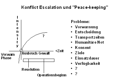 differences, boundary disputes, and competition for natural resources have the potential for precipitating conflicts. Such conflicts could take the form of conventional, civil or subversive warfare. The United Nations must be able conduct operations that are responsive to these new forms of regional and national disputes." (Kofi Annan, Undersecretary General DPKO, April 1993, Ansprache bzgl. Peacekeeping, Kanada)